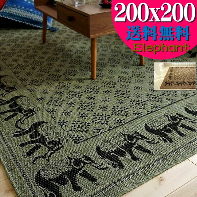 全国送料無料!エスニック調のおしゃれなラグ! 「CAPRI」 人気のアジアン! エレファント・デザイン サイズ 200x200cm 約2畳大 サイズ もちろん!全国送料無料です! 2カラー カーペットの本場・ベルギー産 毛足の無いフラットタイプの織りですので、 サラッとした肌触りで、遊び毛も出にくいカーペットです。