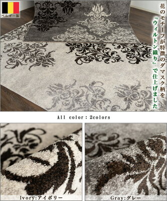 カーペットの本場ベルギー製こだわりのウィルトン織り ! ヨーロッパで定番のオシャレなダマスク柄ラグ お手軽にお使いいいただける、ウィルトン織りカーペットです。